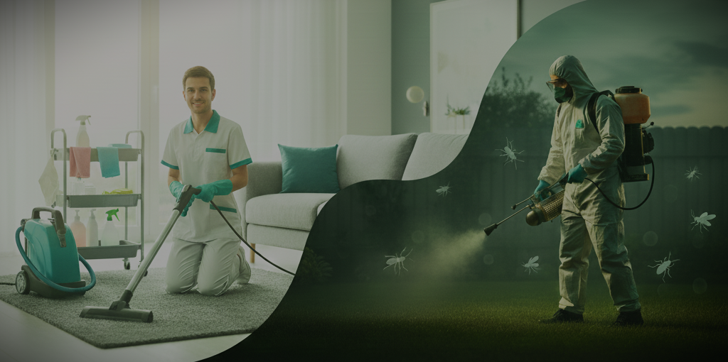 خلّك مطمئن مع خدماتنا المتكاملة، تنظيف المنازل والمكاتب ومكافحة الحشرات بأحدث التقنيات وبأسعار منافسة!